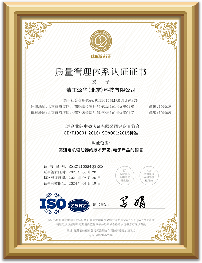 Tsino-Tek has acquired the honors of "New Special Expertise Enterprise", "National High-Tech Enterprise", "Zhongguancun High-tech Enterprise", " Small and Medium-sized Enterprise of Science and Technology " and so on. The company has implemented and acquitted complete ISO9001 quality system, ISO14001 environmental management system and ISO45001 occupational health and safety management system. All products have passed CE and other international safety certifications. In terms of intellectual property rights, TSino-Tek has made a breakthrough in the stranglehold technologies monopolized by foreign countries and has been awarded a number of patents related to ultra-high-speed drives.